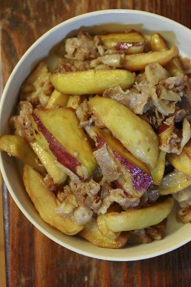 豚こまと一緒に炒めて、すき焼きのたれで味付け~♪