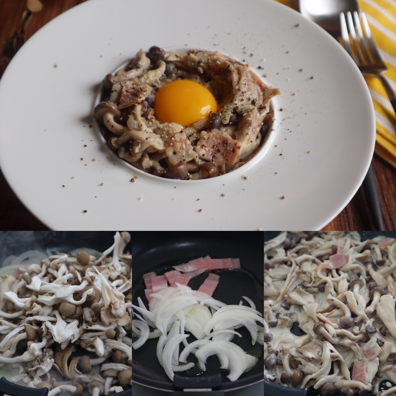 "きのこのカルボナーラ風炒め"