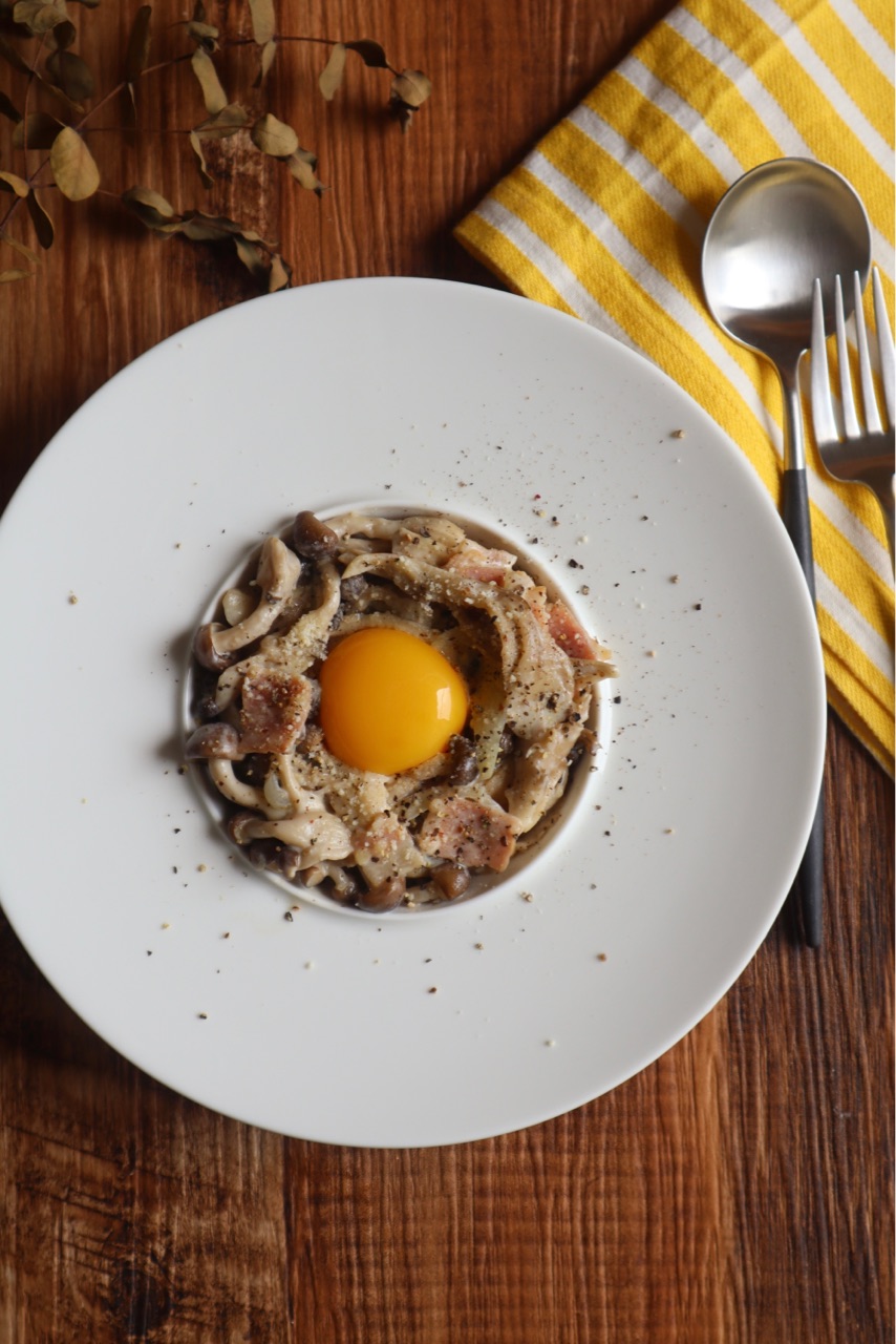 きのこが苦手な人も食べやすいカルボナーラ風の味付け!