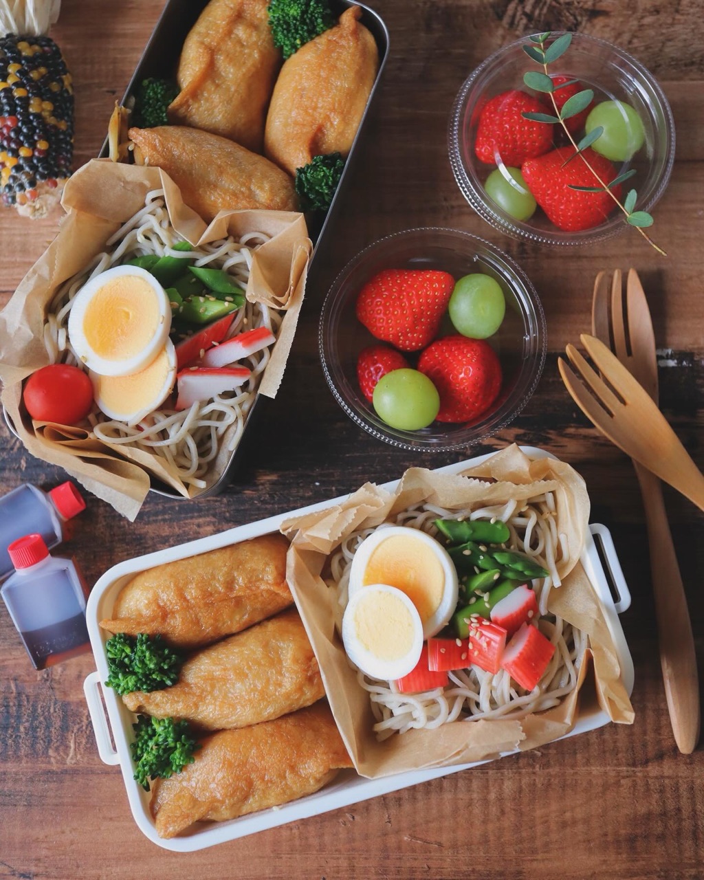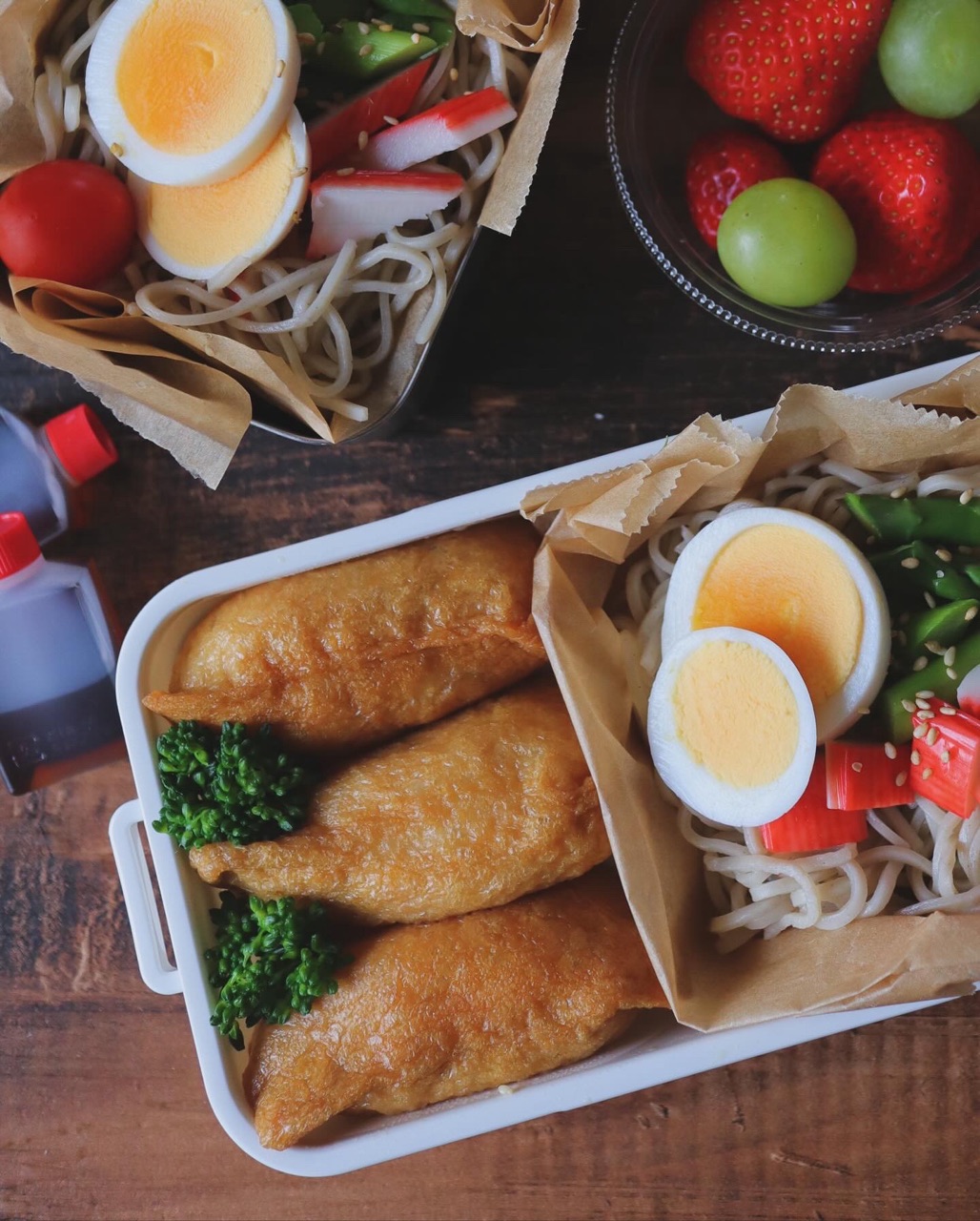 いなり寿司&そば弁当 April 12, 2024 2日目弁当。𓍯𝕞𝕖𝕟𝕦 ┈┈┈┈┈┈┈┈𖠚՜ いなり寿司𖠚՜ ぶっかけそば𖠚՜ いちごマスカット┈┈┈┈┈┈┈┈┈ ✎𓈒𓂂𓏸いきなりの麺弁当。兄さんには度々NGを出されていましたが、めぼしいお肉や魚がない時は麺が助かるんだよね。ただ、うちのJKからも不評〜"女子っぽくなかった"って…え〜、いなり寿司ってフォルムとかかわいくない⁉︎と、思ったんだけど、そういうことじゃないらしい。JK弁当難しいー!** 「お弁当・おにぎり」カテゴリの最新記事 前のページ次のページ