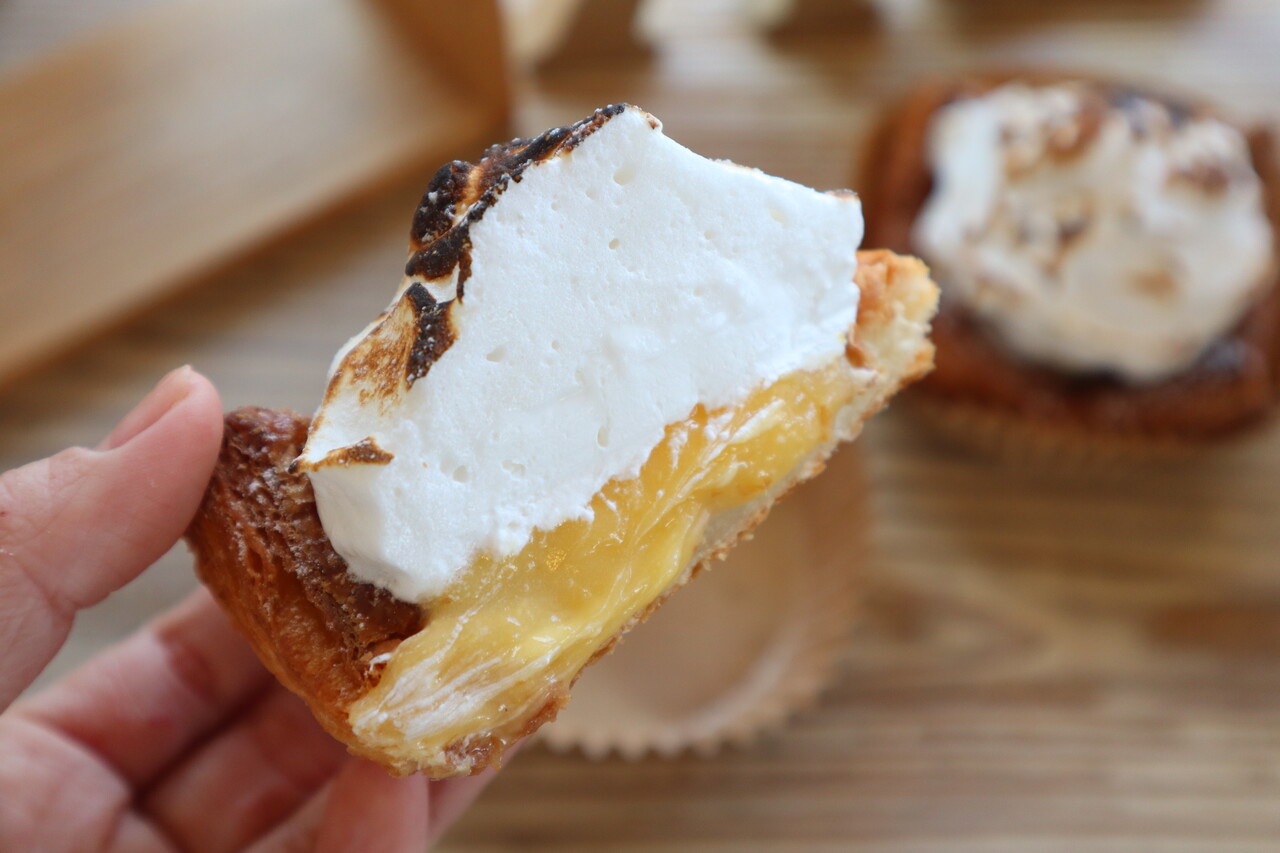 味は、さくさくのデニッシュ生地にレモンの酸味が効いたカスタードがマッチしておいしい!!