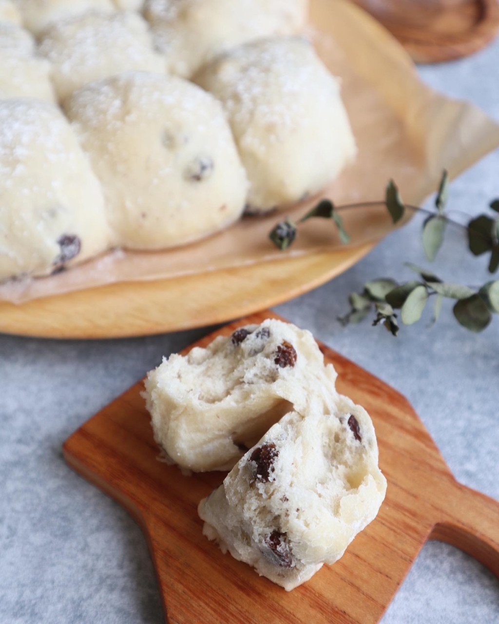 (レーズンはお湯又は水に浸して柔らかくしてから使うとふっくらします)