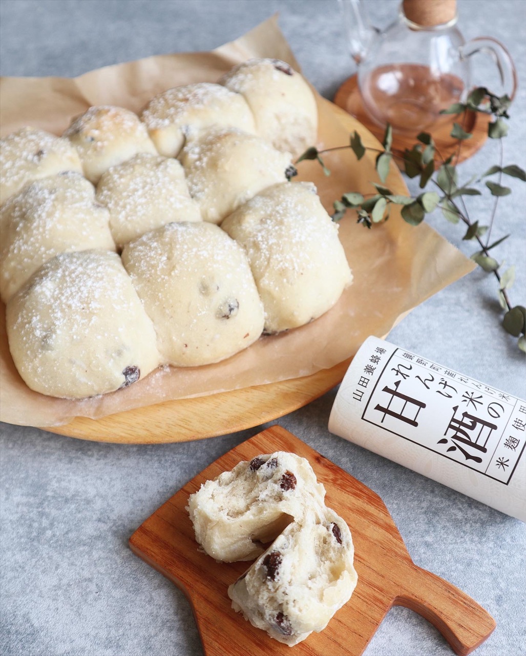 そのままキリッと冷やして飲んでもおいしいれんげ米の甘酒を、ふわもちの甘酒パンにしました🍞