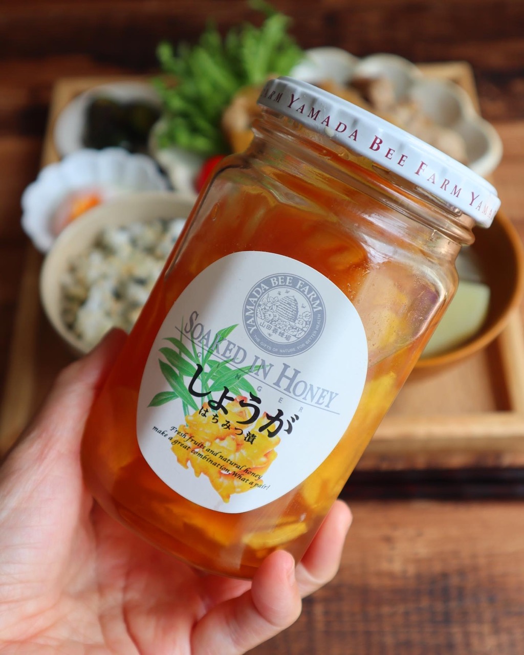 はちみつの中にたくさん漬けられたスライスしょうがも一緒に炒めてポリポリ食べます。