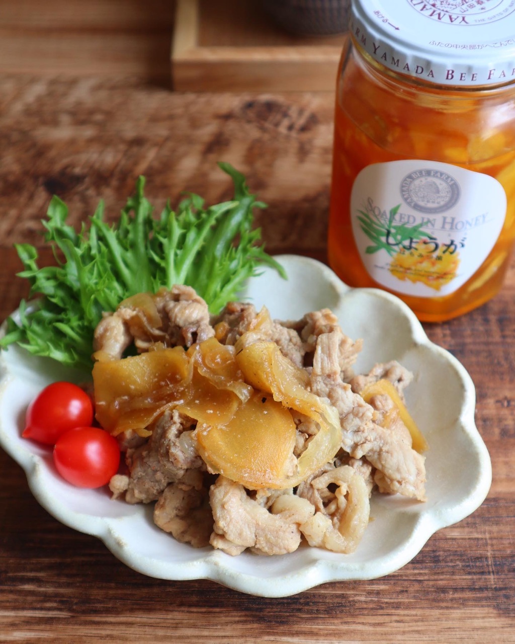 山田養蜂場さんのしょうがはちみつ漬けを使って豚の生姜焼きを作りました。