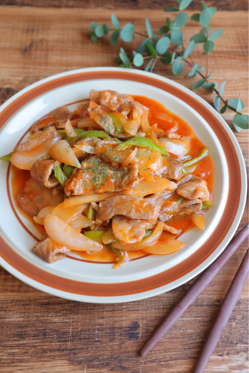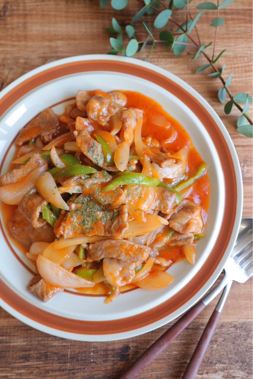 今回のテレビ派"てまなしキッチン"では『豚肉のナポリタン風』を作りました♪